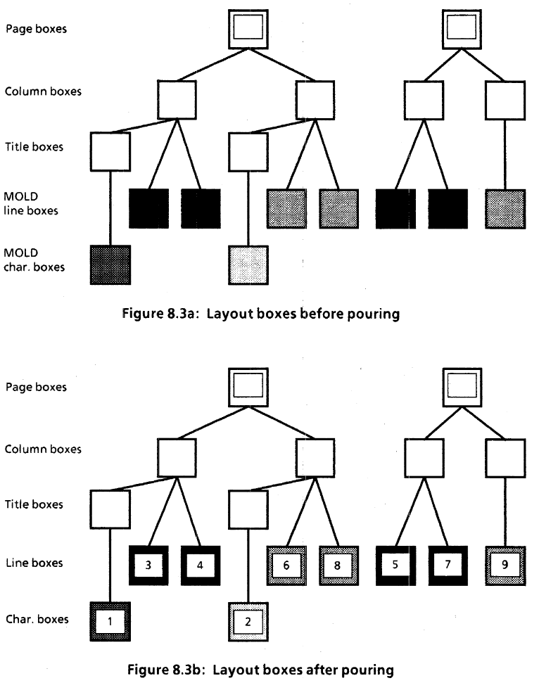 The tree structure of Interscript’s layout templates. https://bitsavers.org/pdf/xerox/interscript/IntroductionToInterscript.pdf