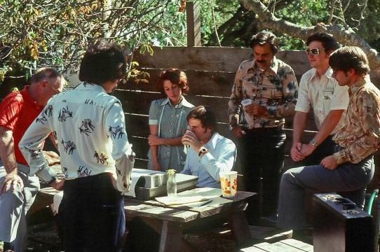 1976 two-network test, from Rossotti’s/Alpine Inn beer garden. Pictured left to right: Cone, visitor, Geannacopolus, Retz, Kunzelman, McClurg, Mathis.