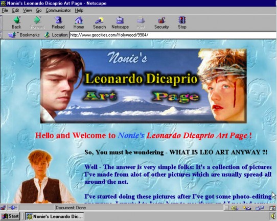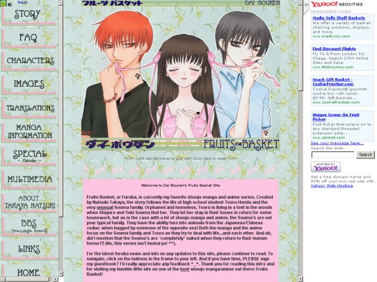 Fan pages of various kinds were a staple of GeoCities. Tokyo was the neighborhood for Far East topics, including anime.