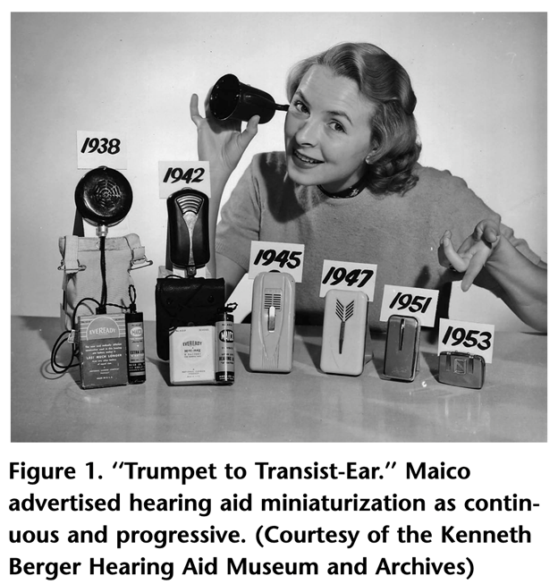 Mara Mills, “Hearing Aids and the History of Electronics Miniaturization,” IEEE Annals of the History of Computing, April–June 2011, pp. 24-44.