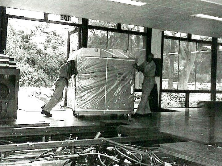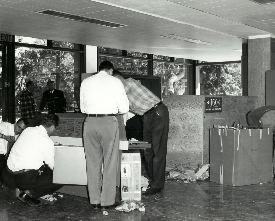The CDC 1604 is delivered and assembled in Spanagel Hall. Source: Calhoun: The NPS Institutional Archive